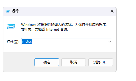 首先,按住Win+R,在弹出的界面中输入mstsc,点击确定